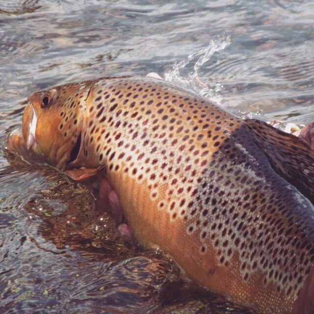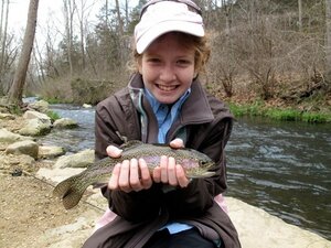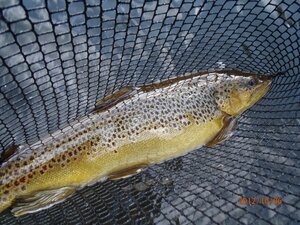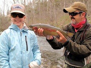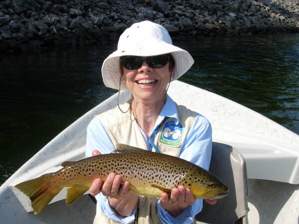 Mary Dawn Beachy with a fine brown trout taken with guide Ben Levin