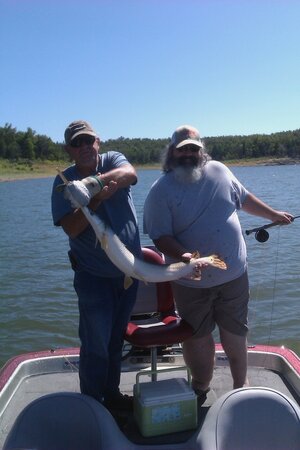 Chris Allen from Memphis at right with a Norfork Lake gar with guide John Gulley