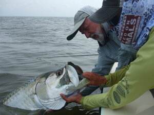 Dave Cornue releasing a 100lb+ tarpon in Florida